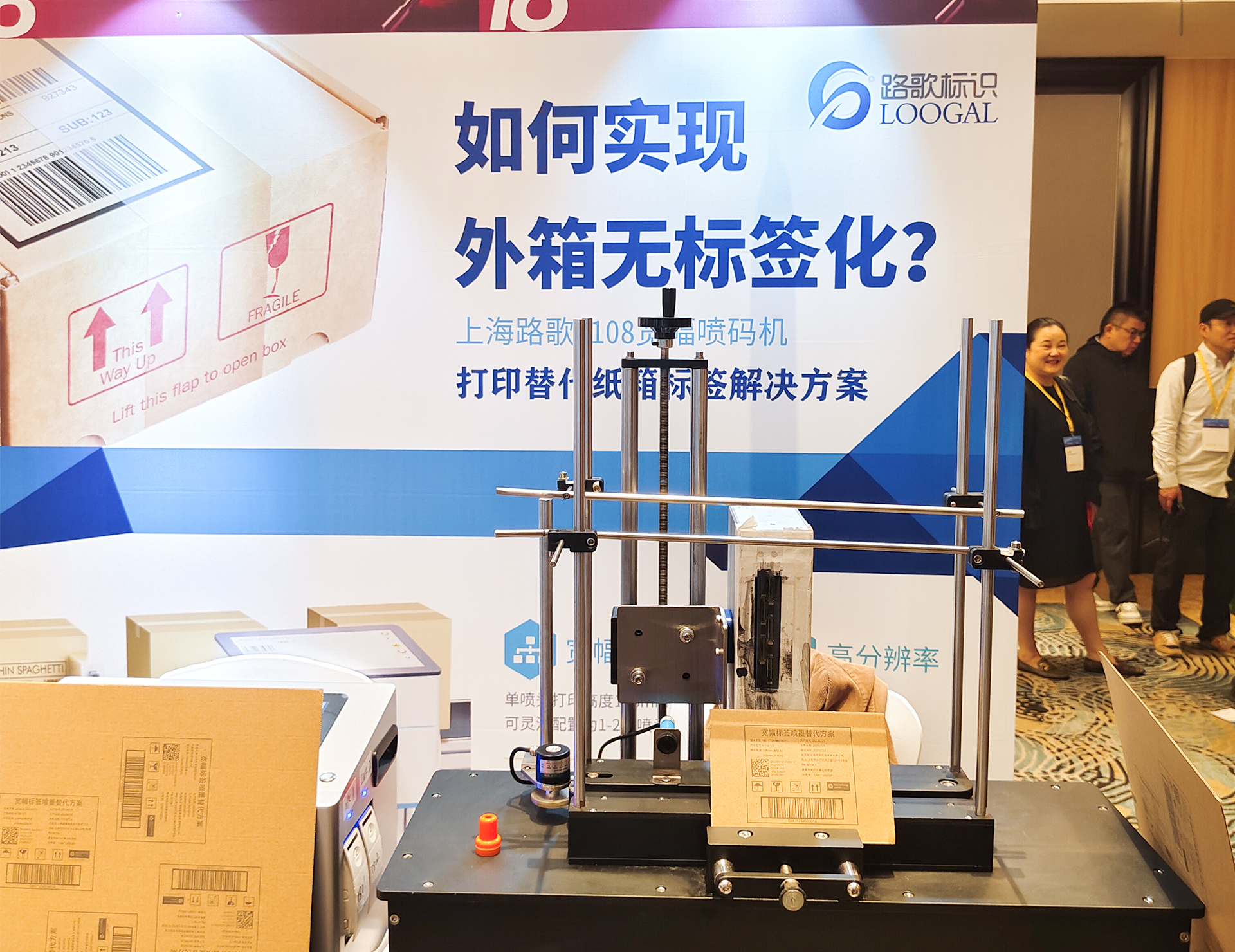 在论坛现场,英国上市公司官网365标识的新品W108宽幅喷码机吸引了众多观众的目光。
